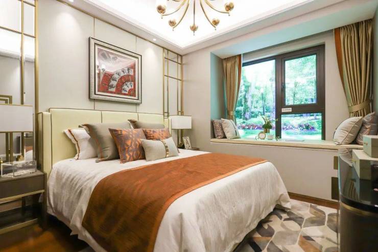 卧室作为起居空间,构筑出主人的私属天地。忙碌一天,回到家里卧室,一段美好的品质生活就此开启。主卧独立衣帽间设计,立足于居者生活需求与体悟,搭配了南向飘窗,打造舒朗入户既视感,最大化保障卧房采光、通风、观景,立体园林景致尽收眼底,彰显主人精致品味。