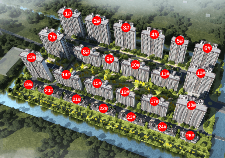 项目主打改善型居住需求,总体量1077户,占地面积约5.55万㎡,建筑面积约11–15.9万㎡,规划建设25栋住宅楼,涵盖高层、洋房及少量别墅产品,容积率2.0,绿化率高达37%,属于低密度宜居社区,预计交房时间为2025年中至2025年6月。
