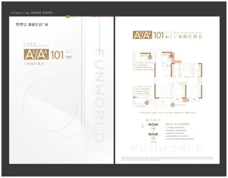 主力户型:101㎡三房,户型方正,得房率高,公摊比例控制在15%-25%合理区间