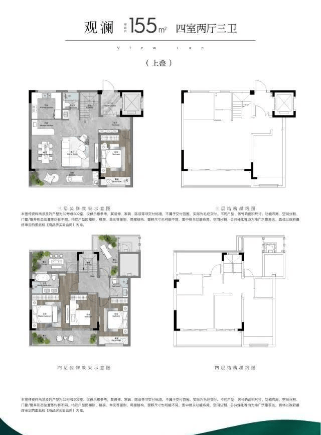 4,上叠155平:四室两厅三卫,总价:300万-350万