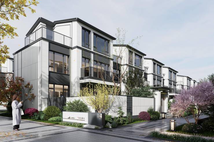总规划:562套房源(北区高层380余套+南区联排别墅170余套),纯别墅社区采用"前庭后院"设计