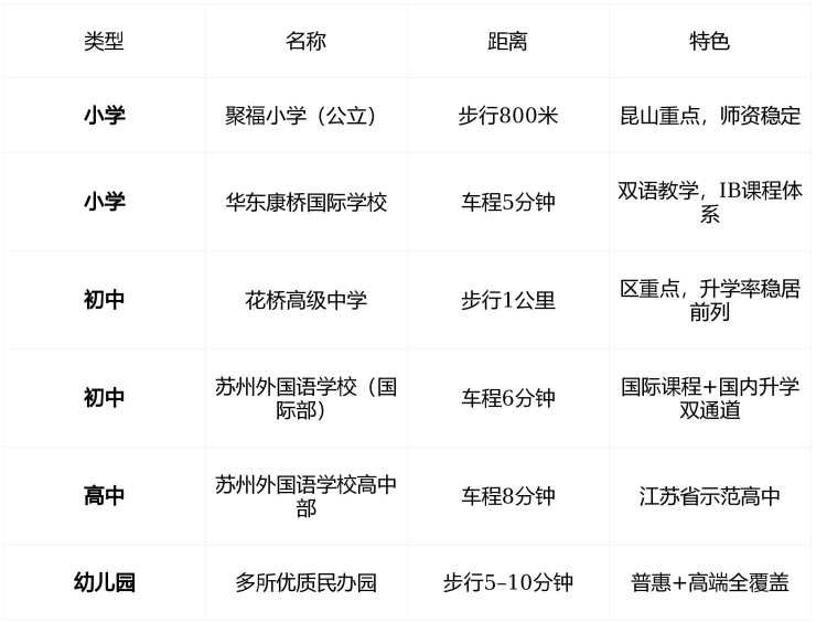 注:学区划分以昆山市教育局当年公示为准,但项目周边教育资源密度在花桥首屈一指。