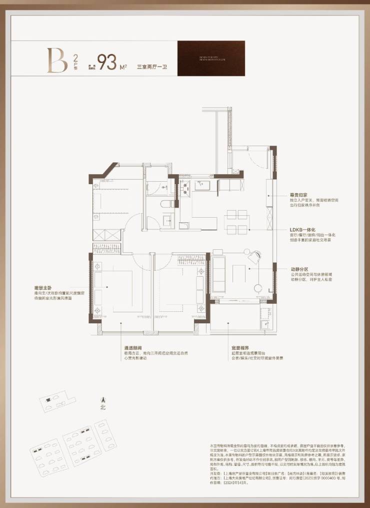 采用LDKB一体化设计(客厅、餐厅、厨房、阳台一体化)