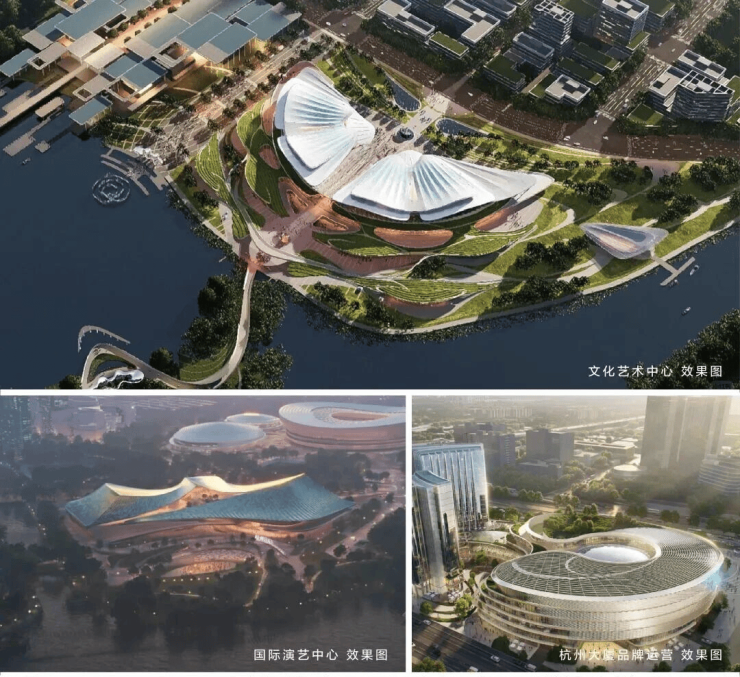 采用扎哈曲线美学,外立面以石材+铝板+系统窗打造流体形态,呼应南湖水韵