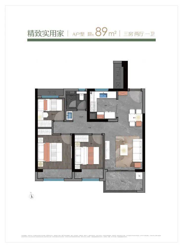 维度89㎡三房100㎡三房两卫115㎡四房定位刚需首置改善型家庭升级设计亮点南北通透超大阳台主卧套房+衣帽间得房率约76%约76%约76%核心卖点总价门槛低双卫设计空间灵活性高