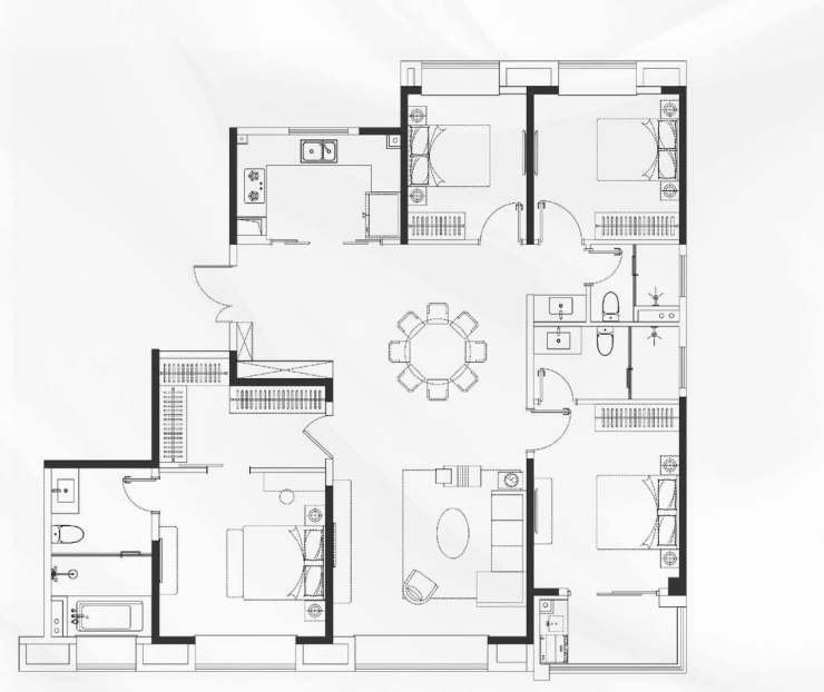 所有户型均注重采光与实用性,得房率约73%-75%。其中90㎡两房采用"双开间朝南+全明通透"的经典布局,最大化利用每一寸空间;175㎡大四房则以四开间朝南、3.1米层高和270°环幕采光,诠释改善型住宅的终极形态