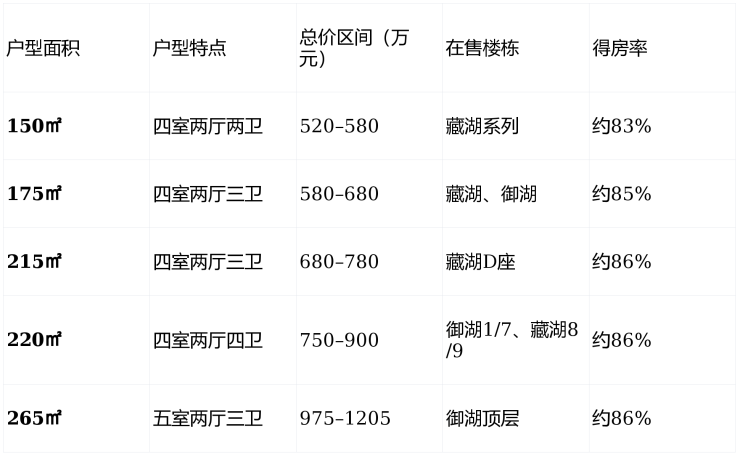 ✅ 温馨提示 :目前仍有 150–220㎡主力户型 在售,265㎡顶豪房源稀缺,建议优先锁定湖景朝向房源。