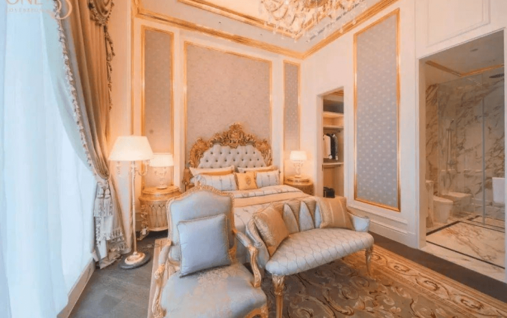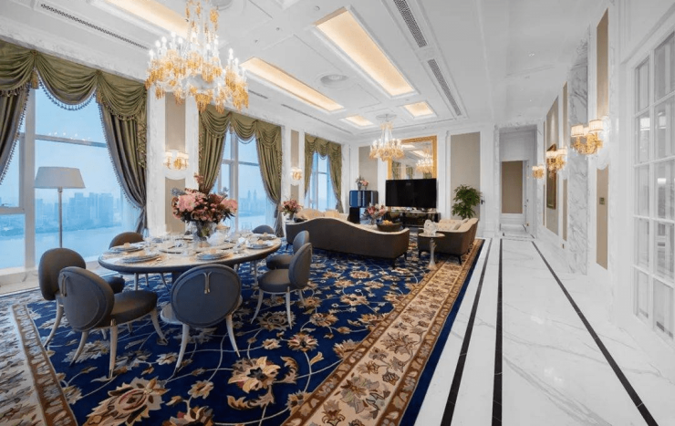 因为新古典主义源自法国宫廷,应用场景层高通常在5米左右,才能为水晶大吊灯、雕花柱头等提供足够的“炫耀空间”。