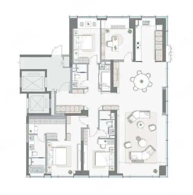 剩余房源 : 总户数252席,剩余不足30席 , 全为190㎡–249㎡纯大平层 , 无小户型、无叠墅、无公寓混售 ,圈层高度纯粹,聚焦城市塔尖家庭。