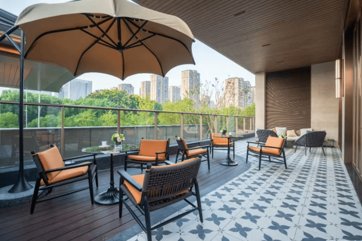 下沉庭院:百年古树为景,步移景异,营造“人在画中游”氛围