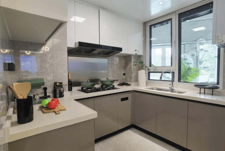 细节处理同样周到,如每根排水管预留检修口,便于后期维护;门框加设石材底座,防潮防水;厨房采用上滑轨门,确保通行安全,完全从居住者实际需求出发,保障装修品质。