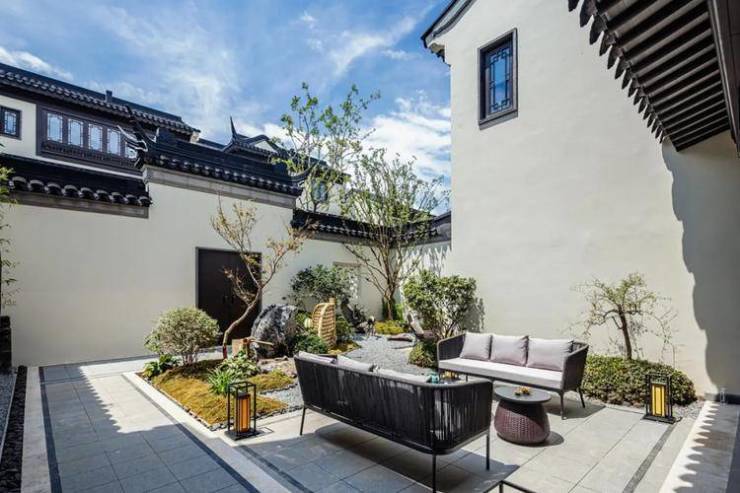 园林设计:九重中式园林,三进归家礼序,青砖照壁、月洞花窗等细节还原江南美学。
