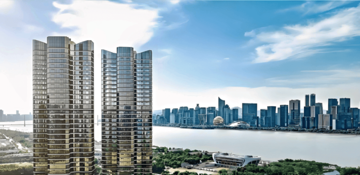 项目雄踞“亚运村-SKP-钱江新城”黄金三角核心,坐拥270°超广角环幕江景,俯瞰钱塘江潮与“大小莲花碗”城市地标群,是钱江世纪城CBD仅存的一线临江地块,自然资源不可再生。