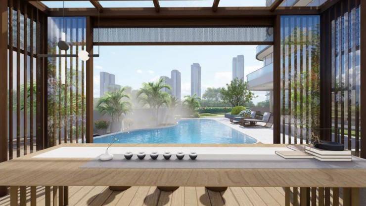 在江一云境每幢楼的2-5层,通过层层退台,在勾勒出流线型外立面的同时,形成了超大露台,造型颇为神似御潮府的排屋。最大的露台可达约700㎡,实在是奢侈之至!论面积,已可媲美郊区独栋的大花园,但却偏偏是市中心的“超级空中庭院”,不知将成为哪位巨子的珍藏?