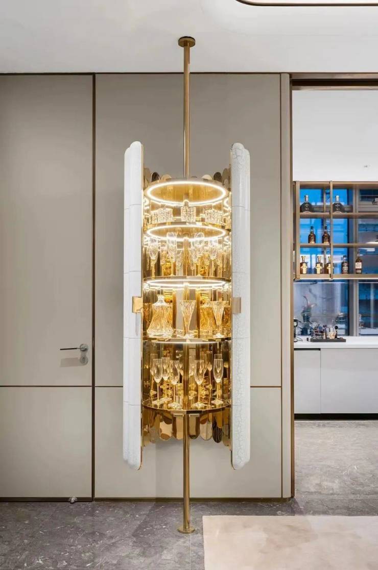 地下一层入户大堂,从车库入口到地下大堂都考究之至,不负杭州大平层标杆作品之名。等候厅每个区域都精心打造,一路仿佛在光影空间中穿行,尤其入户之时的星空穹顶设计,更如同身处灿烂星空之下,浮躁的心瞬间沉淀下来。