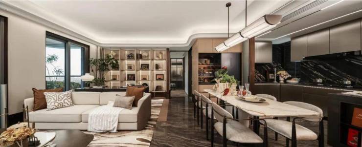 高品质精装交付:精装标准达4000元/㎡,选用方太、科勒等一线品牌,配备三菱中央空调、威能地暖、远大新风系统等高端配置。