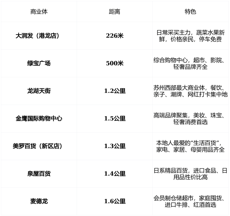 🛒 真实场景 :早上在大润发买菜,中午在龙湖天街吃日料,下午去金鹰买衣服,晚上在麦德龙囤货—— 1公里内,生活节奏快而不乱,品质感拉满