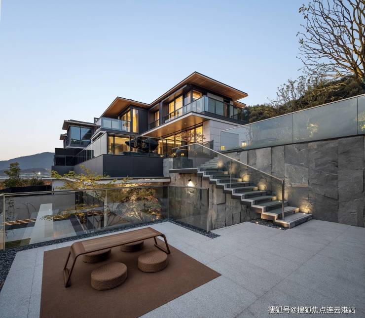 外立面采用石材+铝板,园区规划竹林剧场、滨水步道及星光泳池