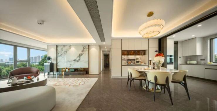 客厅开间约4.5米,LDKB一体化设计,满足家庭聚会、宾客宴请、亲子娱乐等多种场合。