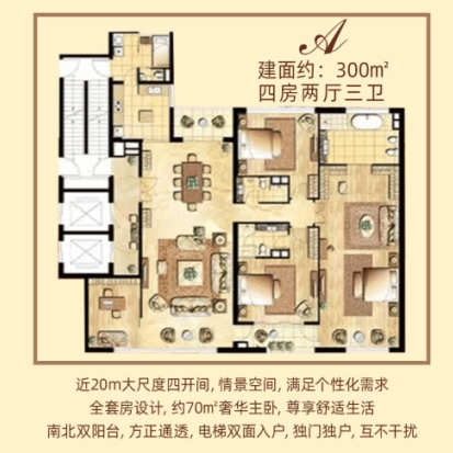 300㎡大平层:四室两厅三卫/五室两厅(毛坯交付)