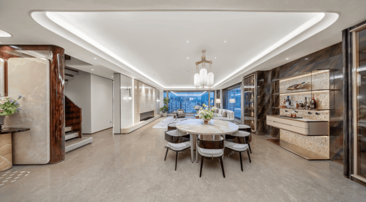 动区LDKB一体奢阔双厅(客厅+餐厅),静区家庭拾趣厅,顶层星空花厅,四大厅堂实现了“动与静”、“对外与对内”的完美区隔。