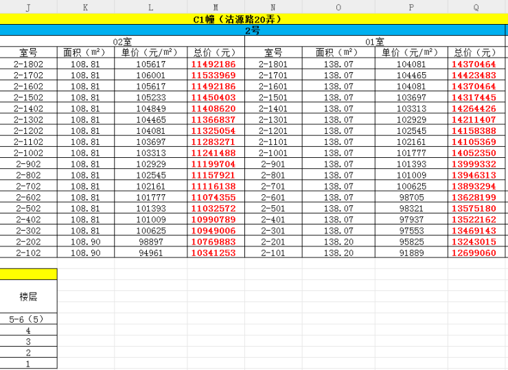最新一房一价表: