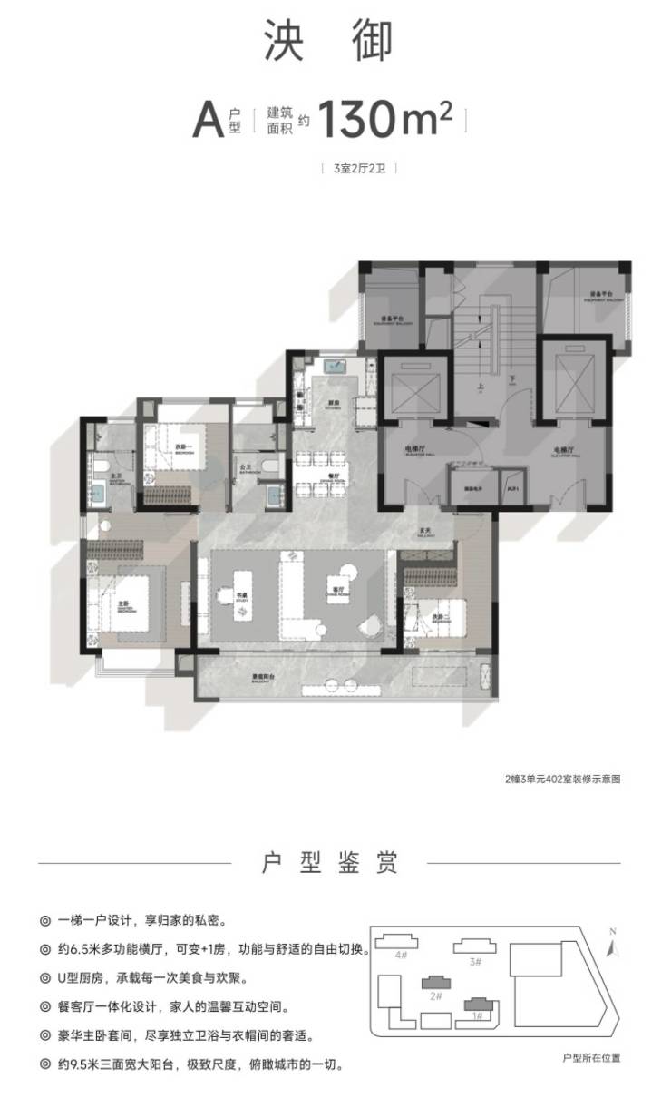 130㎡ 四房两厅两卫 一梯一户,毛坯交付 约325万起