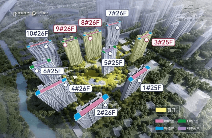 建筑形态:10栋25-26层高层住宅,围合式布局