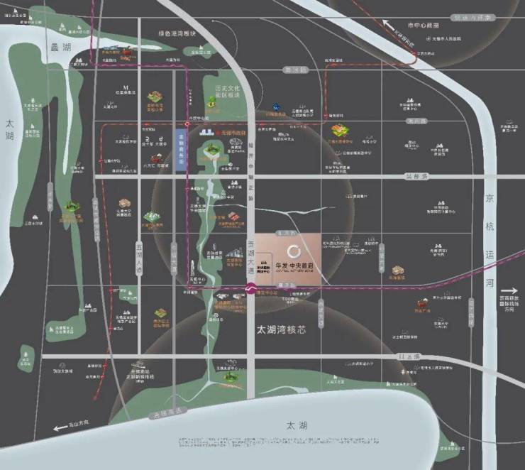 4大市政配套—太湖国际博览中心、国际会议中心、市民中心、无锡中心(规划中)等市政公建配套环伺;
