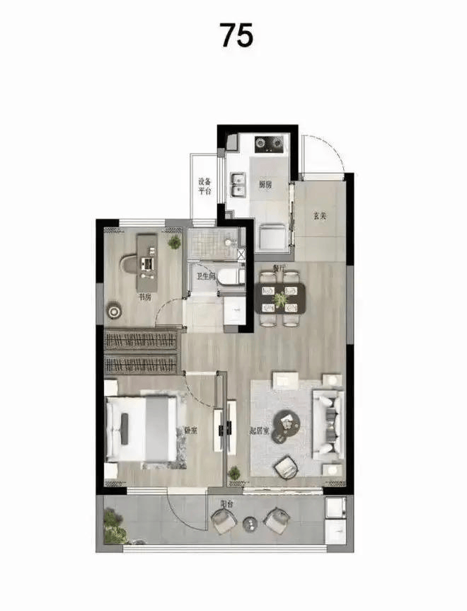 ↓ 建面75平2房2厅1卫: