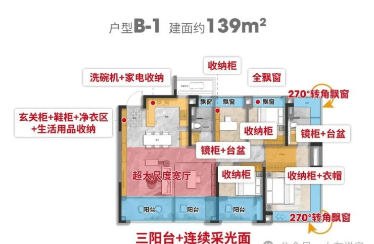 比如建面约135㎡户型,就有好几种“住”法: