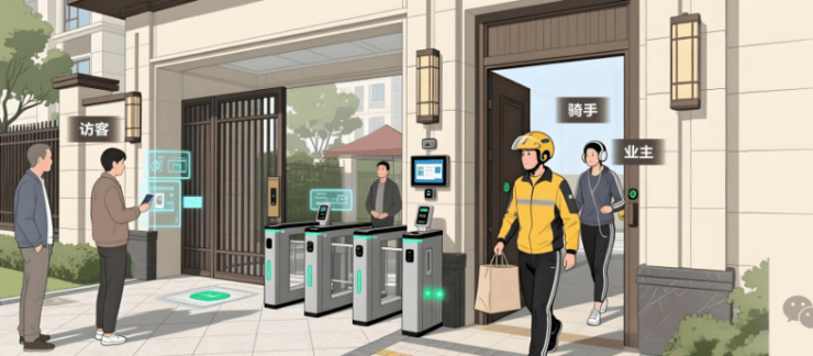对于访客,项目彻底告别了繁琐的登记与等待,业主通过手机APP一键生成 虚拟通行码 ,即可发送给亲友或外卖、快递骑手
