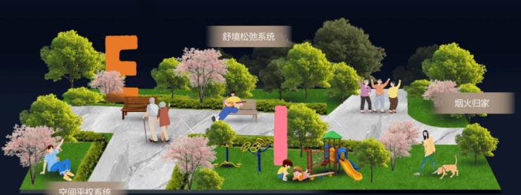 联发·时光新澍以 “全场景松弛系统” 为核心,将景观划分为 静音治愈 、 亲宠陪伴 、 自在休憩 、 街角松弛 等四大功能场域