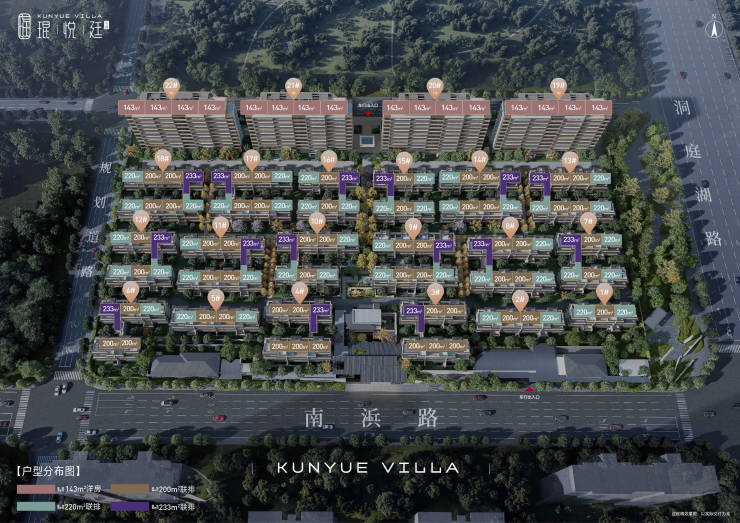 产品类型:联排别墅200-233㎡,洋房143-185㎡