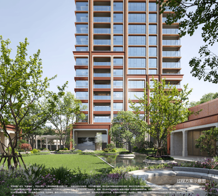 社区景观:内部打造约3000㎡沉浸式中央公园,融合江南水系与爵士乐律动,由泰国TROP事务所设计,设置“声景共生”庭院、林荫步道、静思花园六大主题空间;