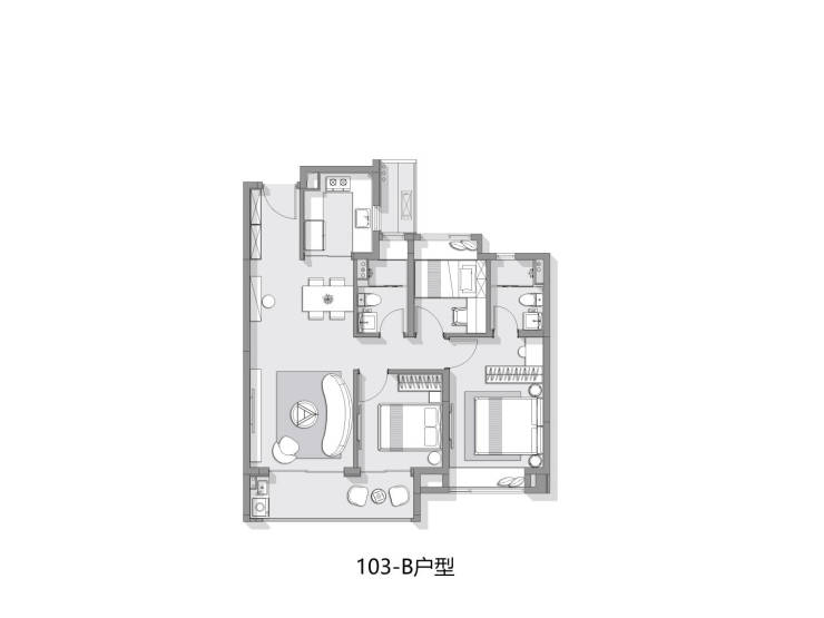 主力户型为建面约94-122㎡的3-3+1房,采用LDKB一体化设计(客厅、餐厅、厨房、阳台一体化),空间利用率达76-79%,优于区域平均水平。具体特点包括: