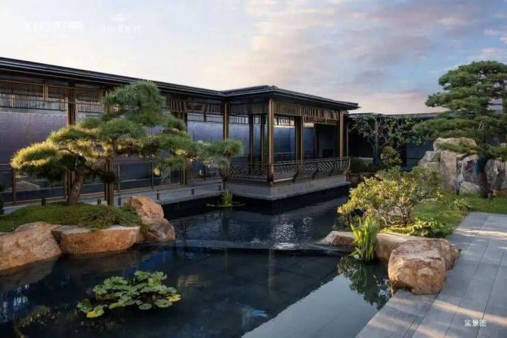 中心锦鲤池:整块太湖石围合,水系循环系统由园林大师设计