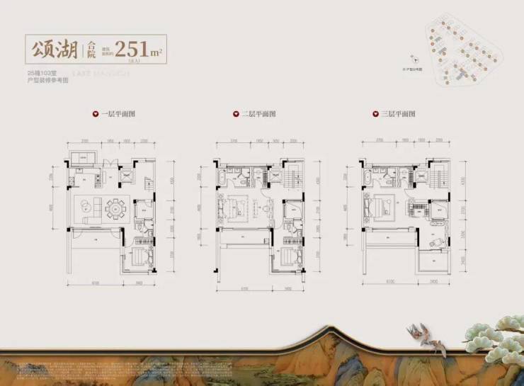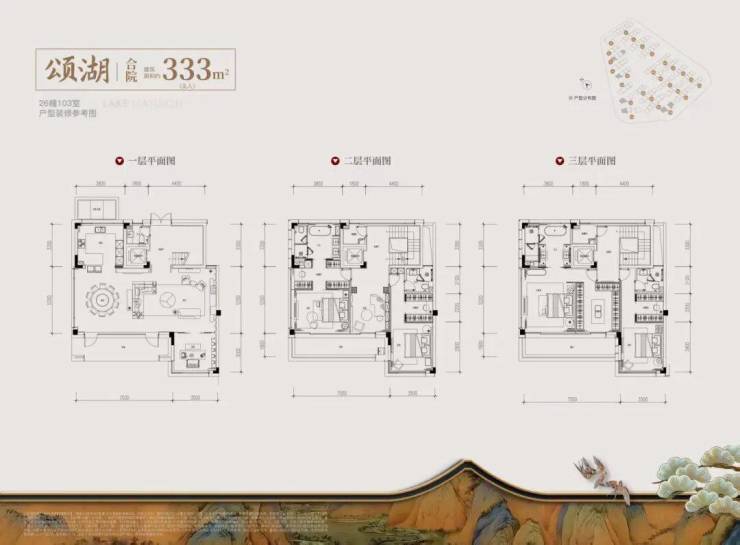 合院:建面约251–333㎡,毛坯交付,3层纯独栋,私家庭院+下沉式会所,对标上海汤臣一品。