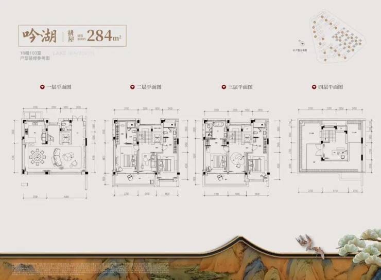 排屋:建面约249–284㎡,毛坯交付,地下挑高5.8米,可改造为星空影院、酒窖、健身房;
