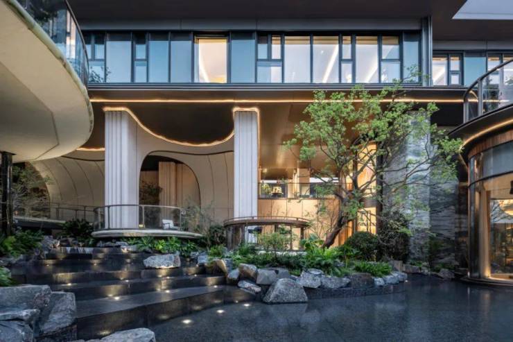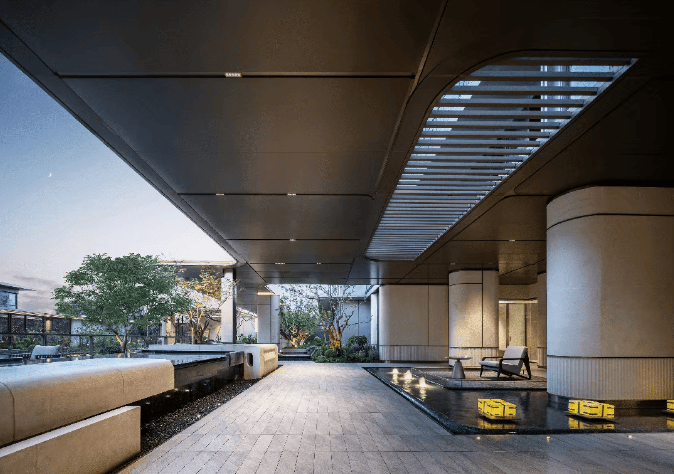 门-廊-庭的入门动线,巧妙地创造出了层层递进的归家感受。天熠东方在一个个的场景转换中,润物无声地深度过滤你的归家情绪,这就是大师的功力。