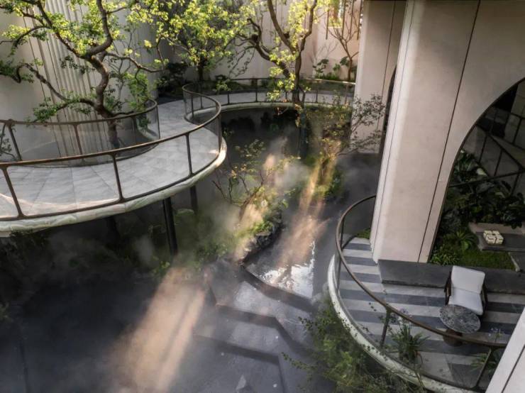 地下会所内的泡池旁,要开窗映树影。你眼前的窗,就变成了陆游诗中「唤君同赏小窗明」的那扇窗。