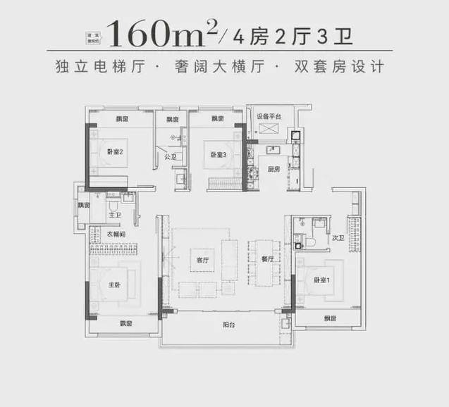 主力推售:小高层143㎡及160㎡户型,洋房180㎡户型