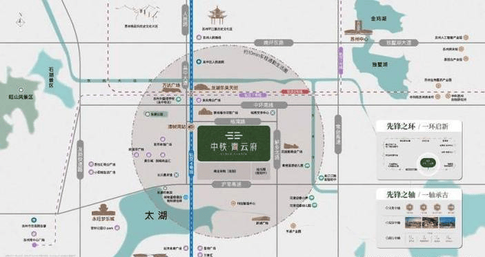 生态休闲优越:东湖公园(约887米)、石湖景区、太湖苏州湾三大生态资源环绕,提供晨跑、散步等自然体验;