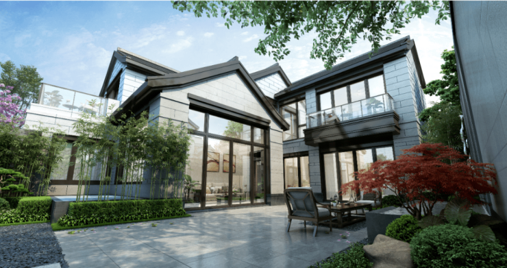 定位:新苏式围合院落别墅,容积率0.69,绿化率37%,共172户,独门独院设计
