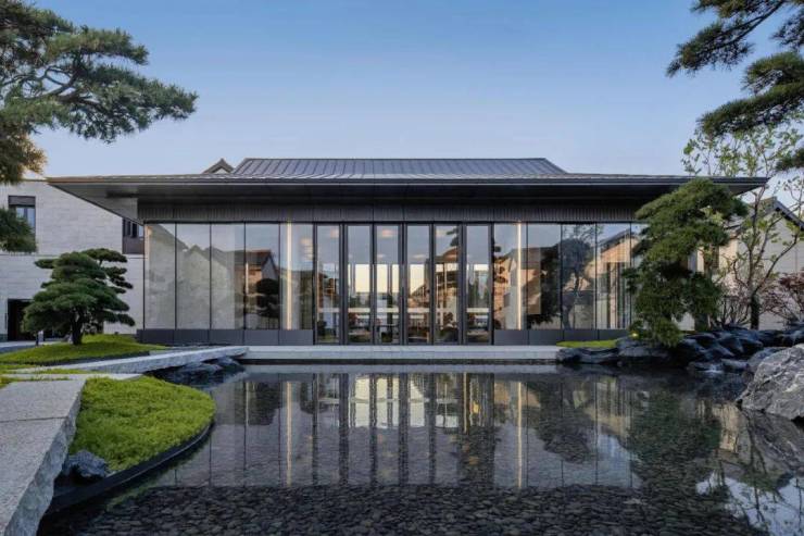 建筑风格:干挂石材立面,融合传统苏式元素与现代设计,地下室挑高5.4-5.8米