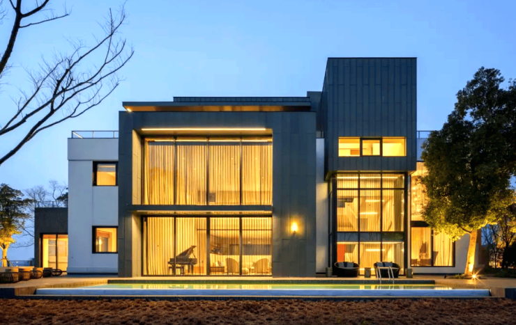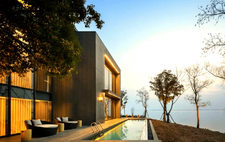 是由纽约Tsao & McKown建筑事务所设计的湖景独栋别墅综合体