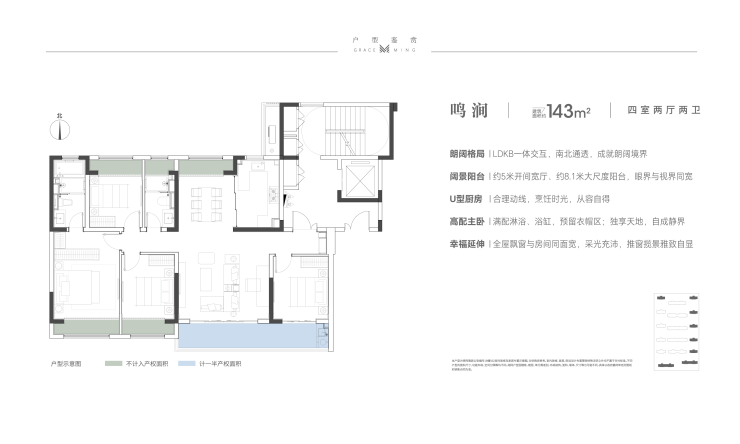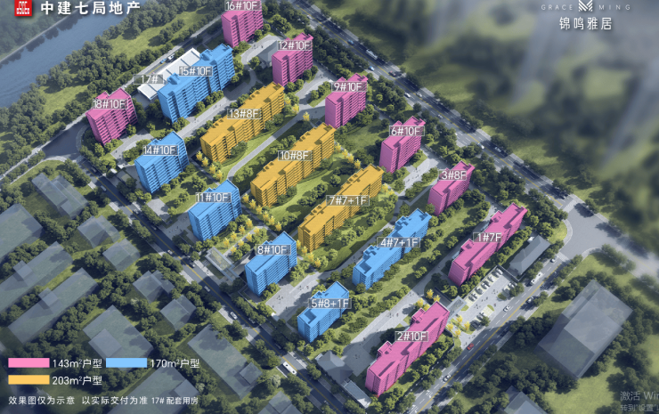 主力户型143㎡、170㎡、203㎡四室格局,得房率高达85%-92%,远超市场平均水平