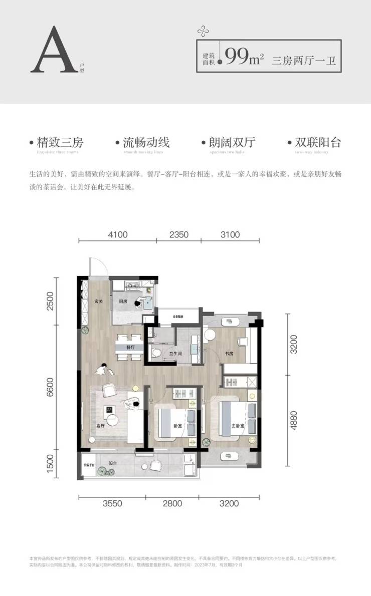 户型面积(㎡)核心特色参考总价99㎡三房两厅一卫动静分离+全明户型,得房率81%约185-200万109㎡三房两厅两卫三开间朝南,双阳台设计约210-230万129㎡三房两厅两卫大面宽横厅,独立家政空间约260万143㎡四房两厅两卫3+X灵活空间,270°观景阳台约307万