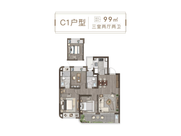 99㎡ 20,000–20,500元/㎡ 172万–185万元 164万–177万元 三室两厅两卫,主卧带飘窗,客厅开间≥4.2米,改善主力
