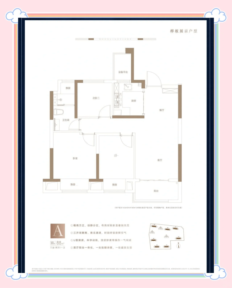 88㎡三房一卫:三开间朝南,客厅面宽3.4米,适合刚需家庭
